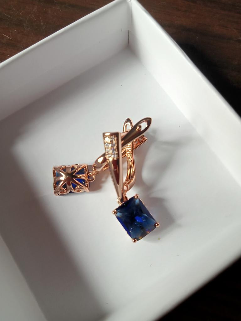 Kinel Trendy Dark Blue Square Zircon Drop Earrings