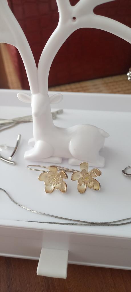 Thank you to the seller, the earrings came in a beautiful box, I liked them all, I will give them to my daughter, I will order them for myself, thank you very much. I will update, my daughter is wearing them and she likes them. The centers are very black, I do not advise anyone.