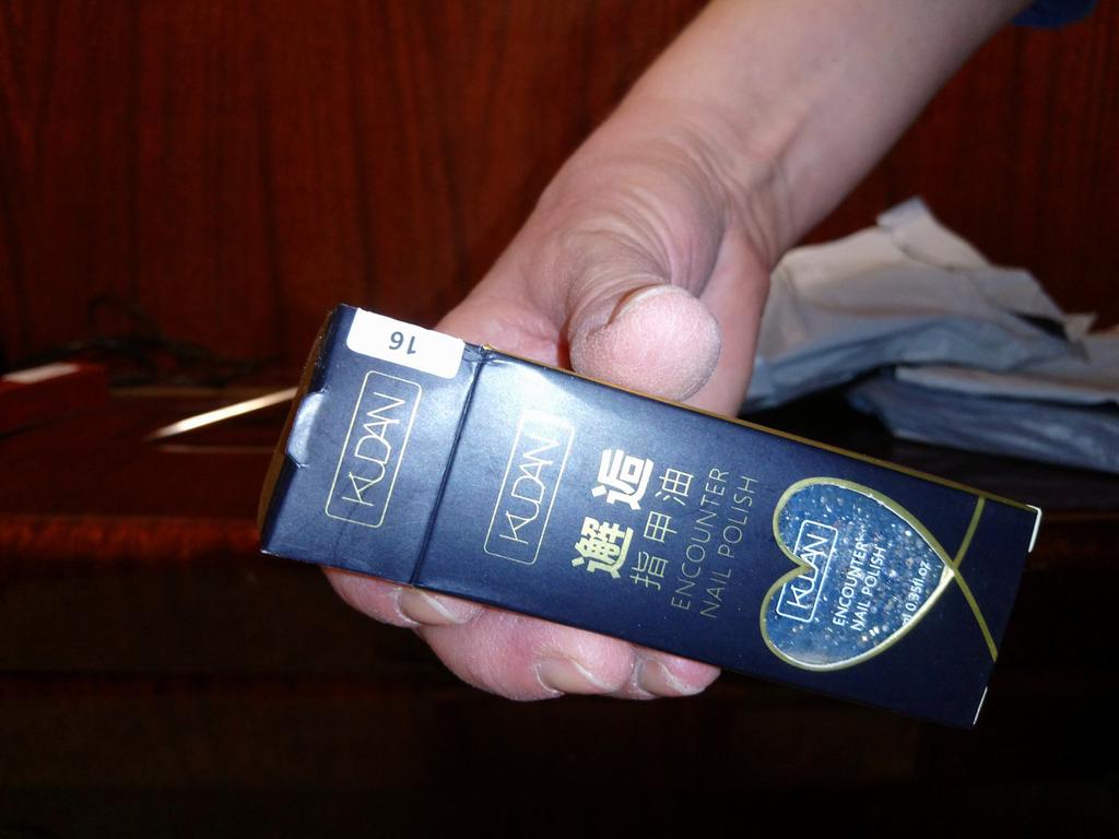 The polish is beautiful, packed in a box. I took it as a gift. The color is not as bright as in the photo.