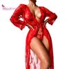Lady Nightdress Lace Open Front Up Two Piece Transparent Floral Lace Sexy Nightdress Panties Set
