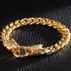 Massive Gold Plated Stainless Steel Double Wolf Head Hand Bracelet for Men Curb Cuban Chain Jewelry Party Gifts Homme Bracelets