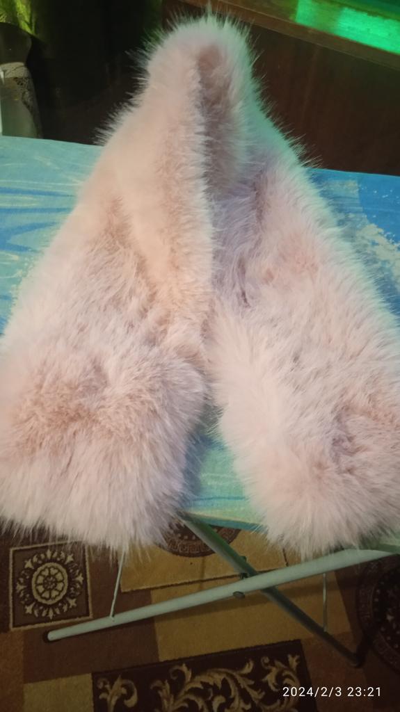 I didn't really like the scarf. A year ago I ordered a black one, it had a twill lining and was a bit wider. I wear it with pleasure. The white one has a white plush lining and is narrower, and the fur isn't very good. Well, maybe it will fluff up.