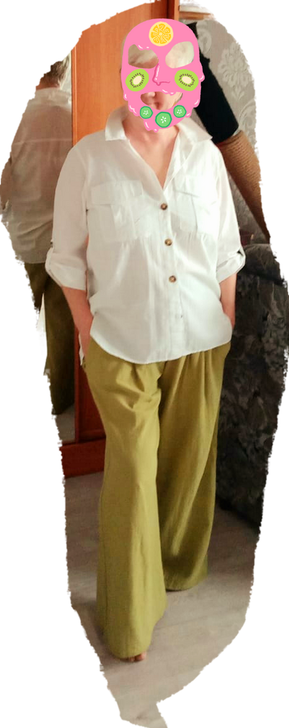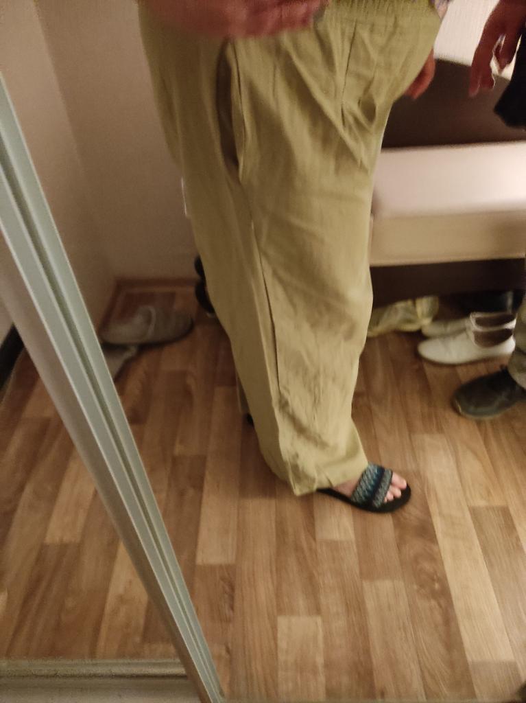 The pants fit well in terms of shape, they only bother me, the cuffs are a bit too high, so I have to turn them inside out. The color differs from the picture.