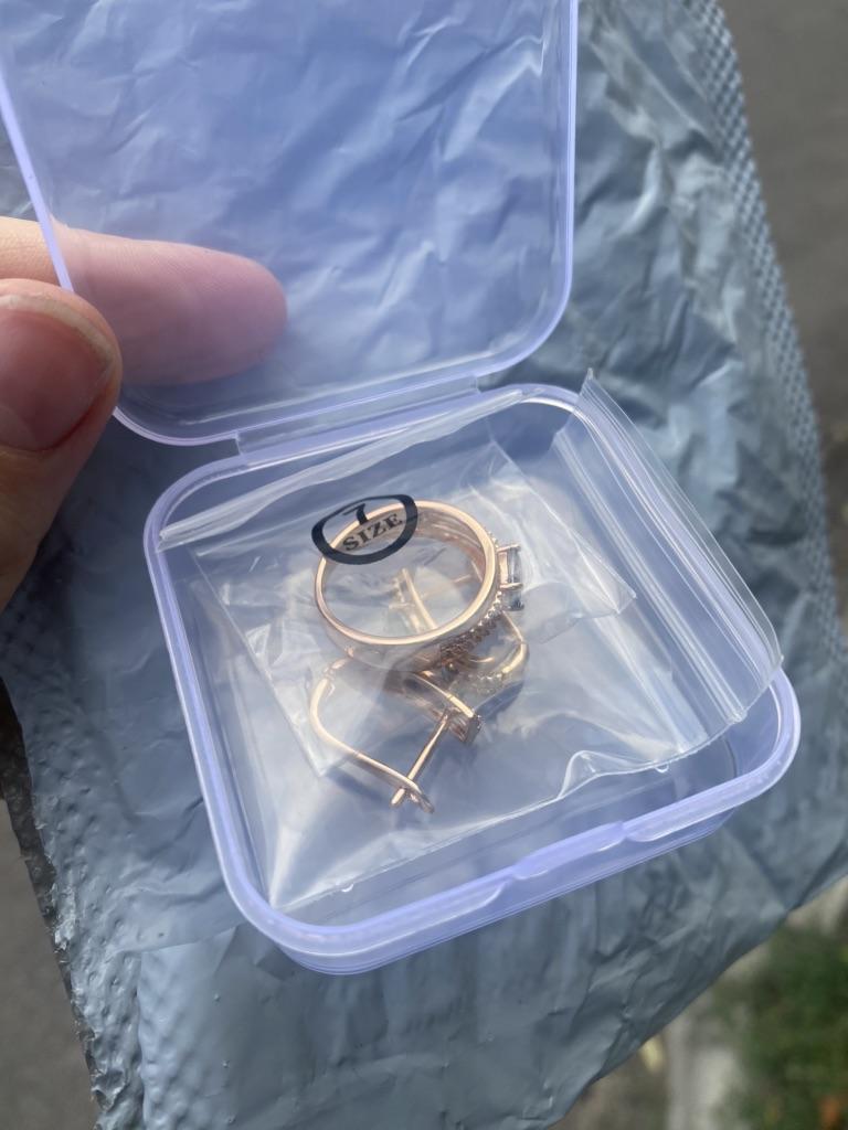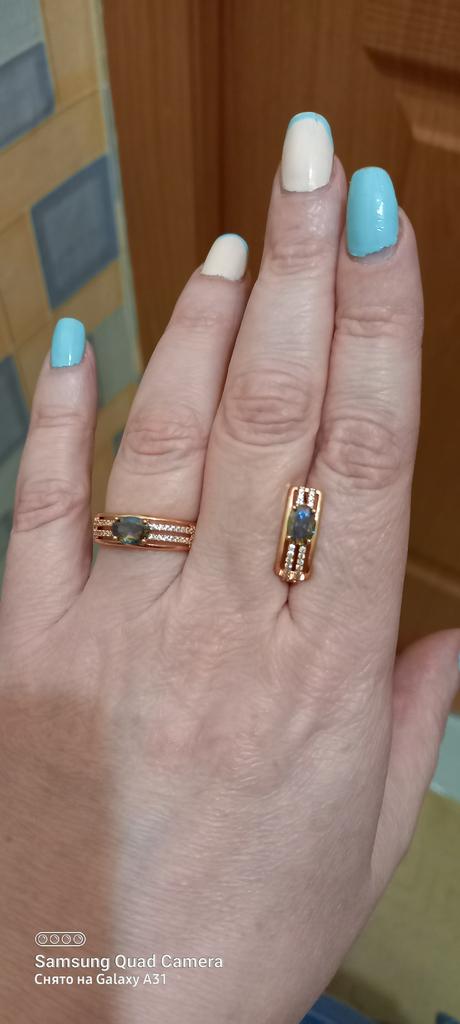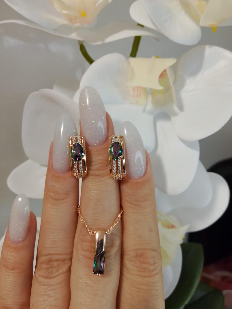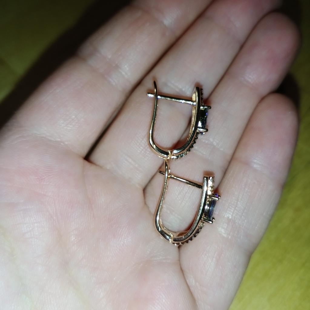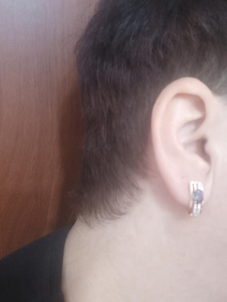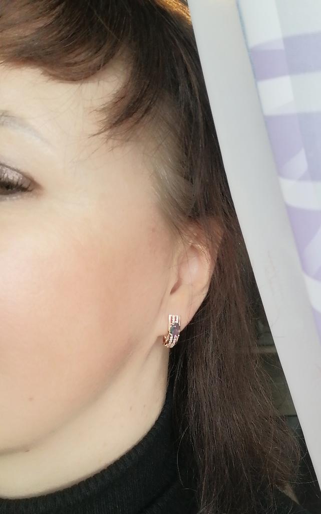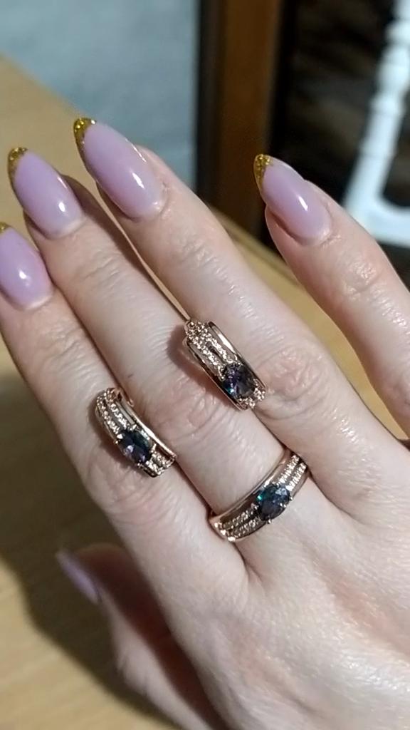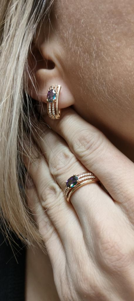 The earrings are beautiful, neatly made, but they look massive. A little too big for me, the holder that is inserted into the ear, you need to have a transparent kapron pusette to pull the earring up to the ear, because it turns around with the central stone to the bottom. The central stone is iridescent from pale green to the pink color, I like it. I ordered a 7 size ring for the earrings, but it came in a 10. Thank you to the seller, everything is neatly packed and folded in a nylon box.