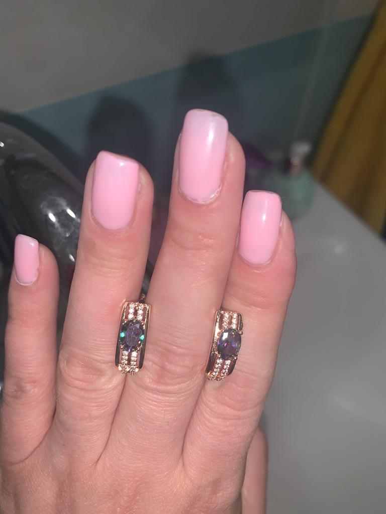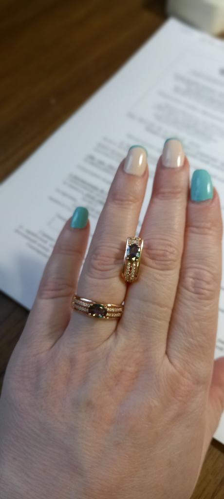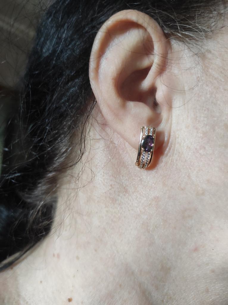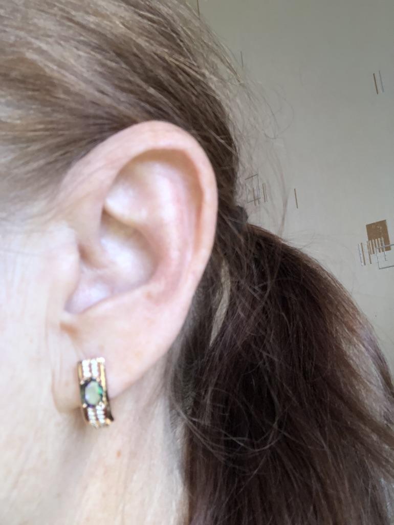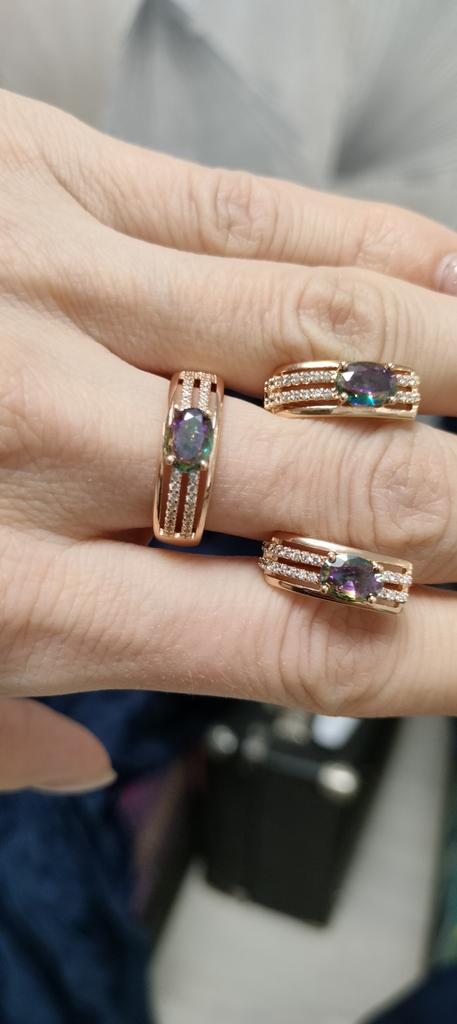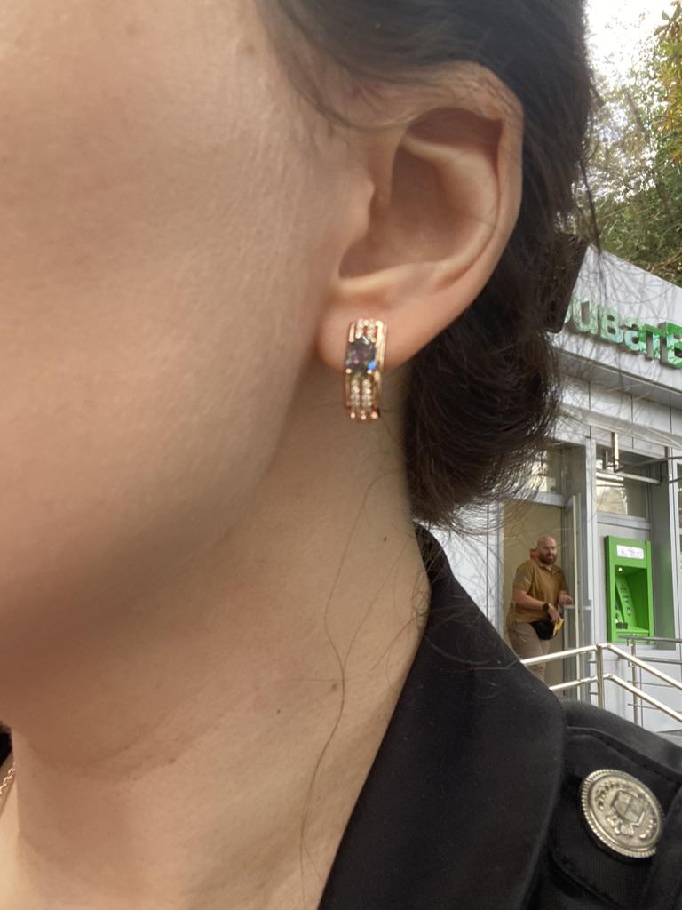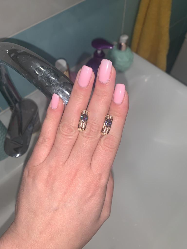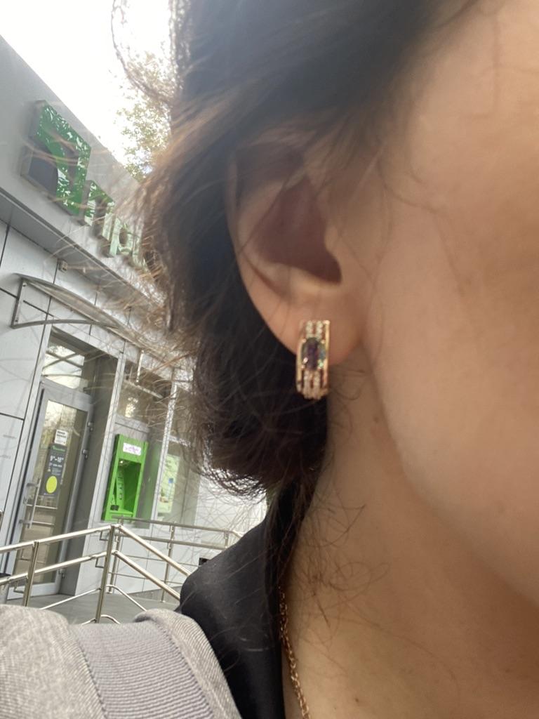 The earrings are beautiful, neatly made, but they look massive. A little too big for me, the holder that is inserted into the ear, you need to have a transparent kapron pusette to pull the earring up to the ear, because it turns around with the central stone to the bottom. The central stone is iridescent from pale green to the pink color, I like it. I ordered a 7 size ring for the earrings, but it came in a 10. Thank you to the seller, everything is neatly packed and folded in a nylon box.