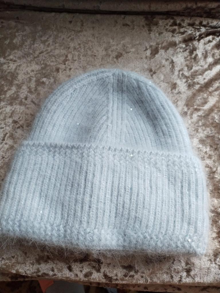 Disappointed with the hat, because I didn't see that it has small sequins. I thought it would be pure snow white. I was led by the price of 350 UAH. Because there is one in the store for UAH 500. I bought a black one