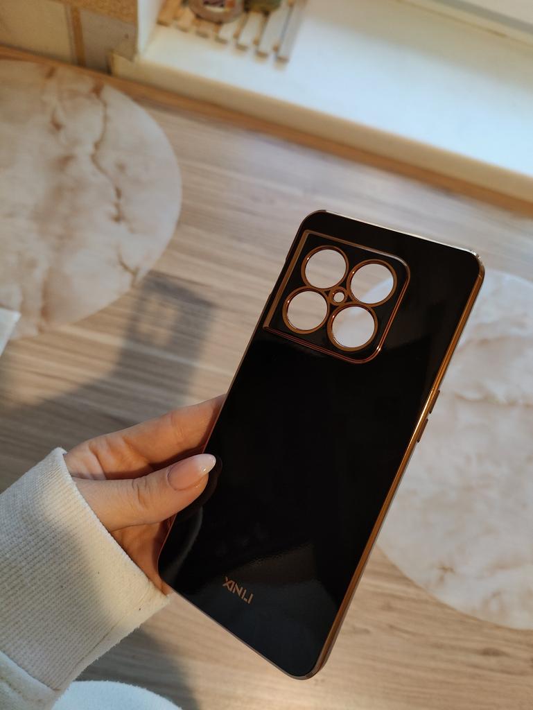 Nice case, looks solid. Pure black, with golden-bronze edging. Mysterious moon window - only in the photo, apparently, is intended to indicate a glossy surface. I was very afraid of fingerprints on the gloss, but they somehow quickly disappear. I am pleased.