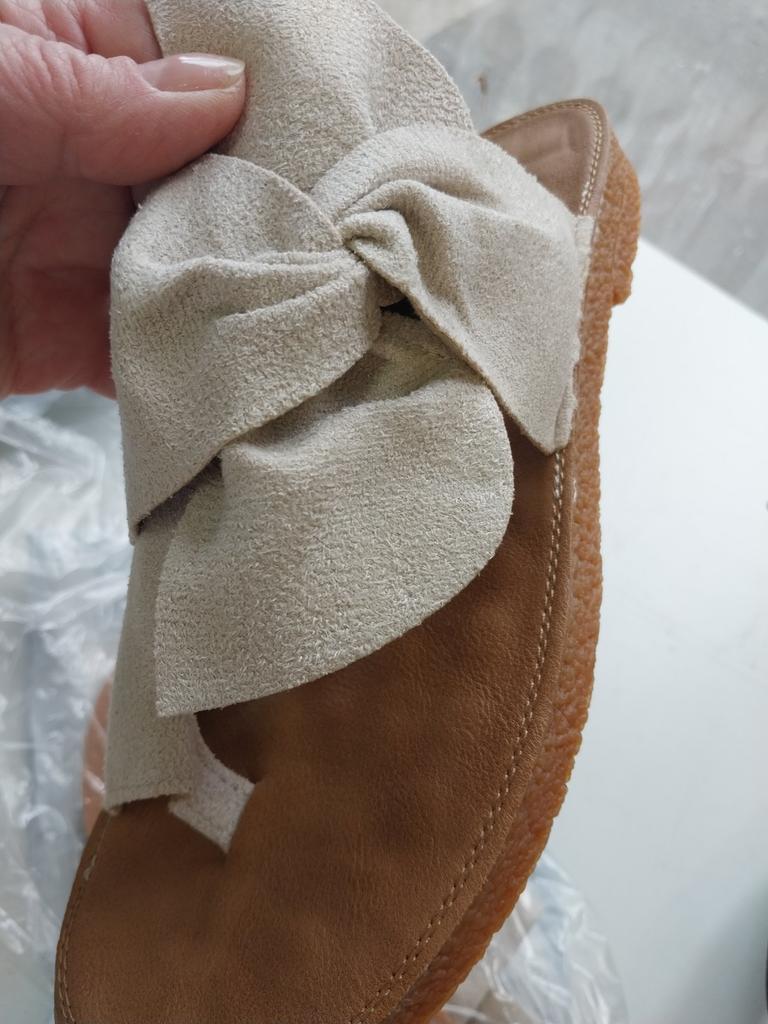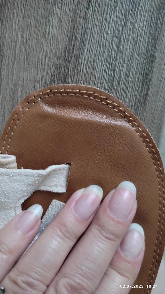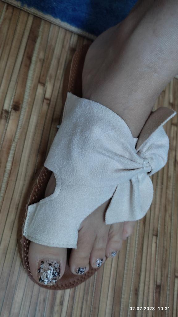 I received my order, thank you very much. The sandals are very cute, just like in the picture. Soft. For medium and wide feet. I ordered 39 for my 38, everything is fine.