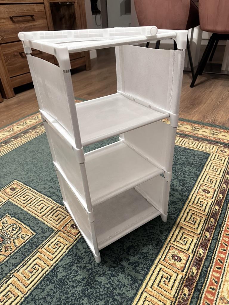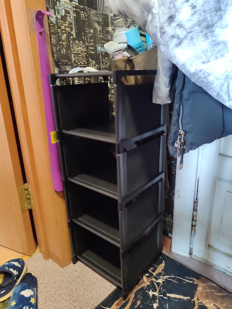 I thought it was plastic. And it is made of fabric like tarpaulin. Not worth the money. Well, the shoes hold up well and stand firmly. I assembled it without prompting.