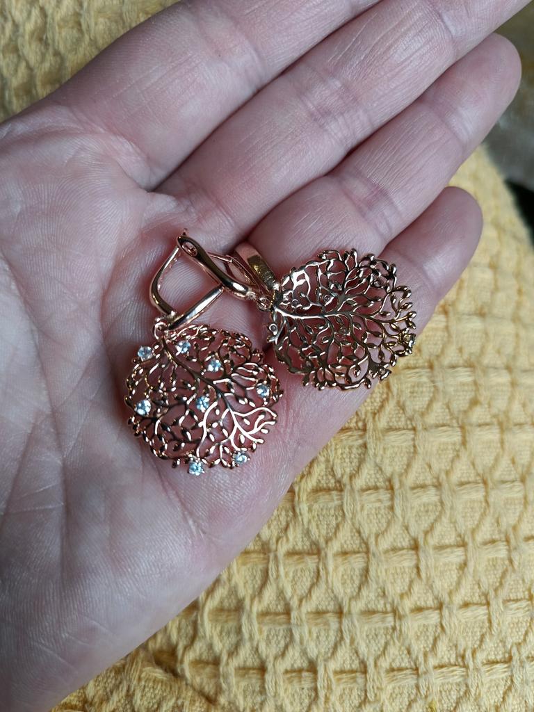 Hollow Leaf Texture Match Zircon Round Pendant Earrings Luxury Exaggerated Jewelry
