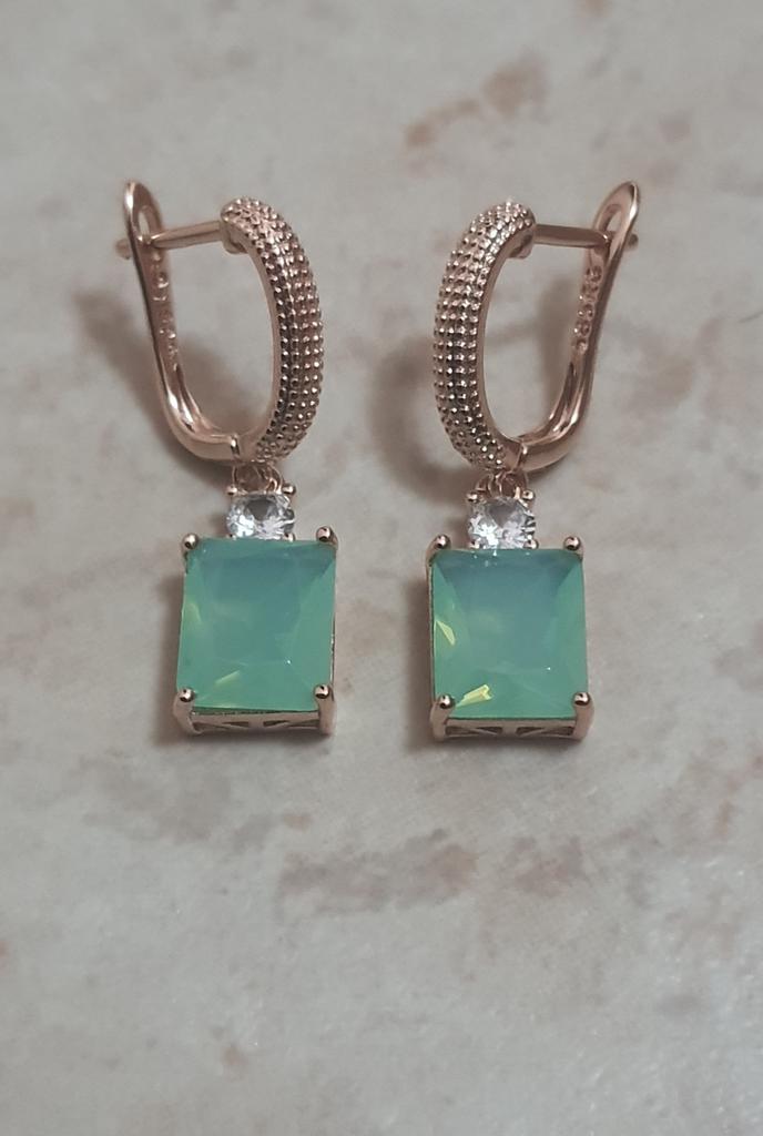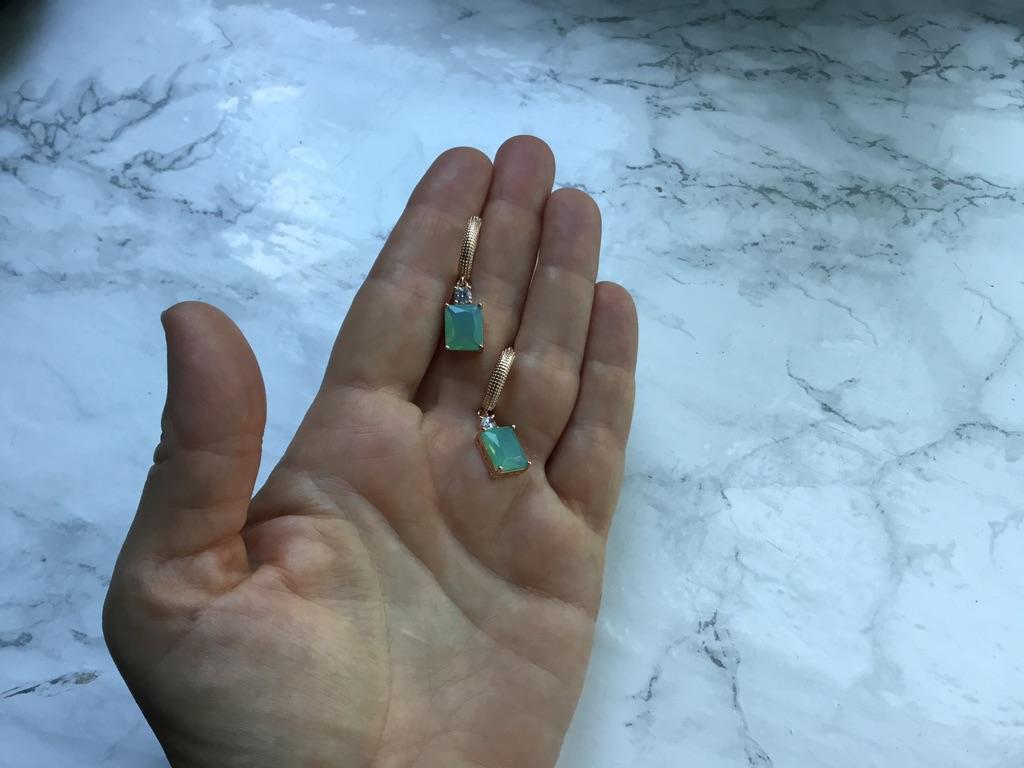 Kinel Square Blue Green Natural Zircon Dangle Earrings For Women Rose Gold Color Boutique Jewelry Party Wearing
