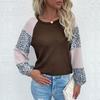 Autumn Women Fashion Leopard Print Patchwork T-shirt Loose Knitted Top