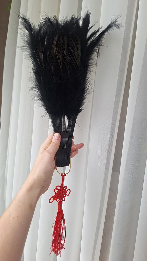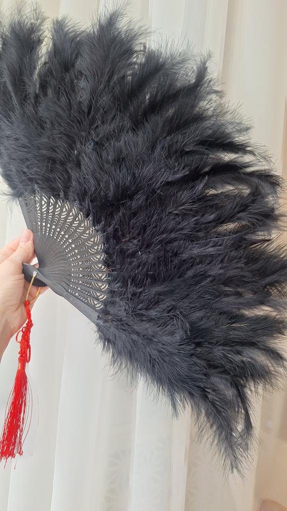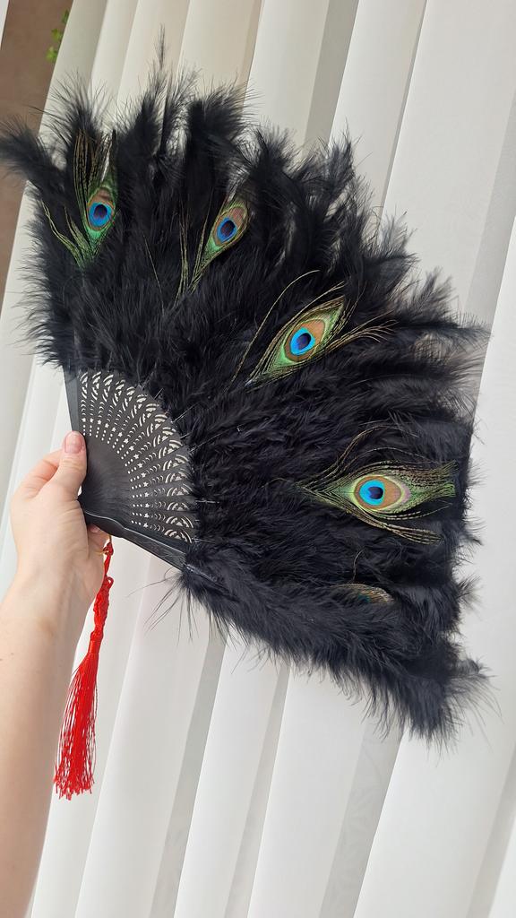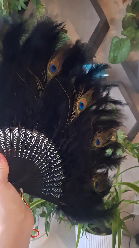 Peacock Feather Folding Fan Chinese Japanese Handheld for Wedding Dancing Party Black