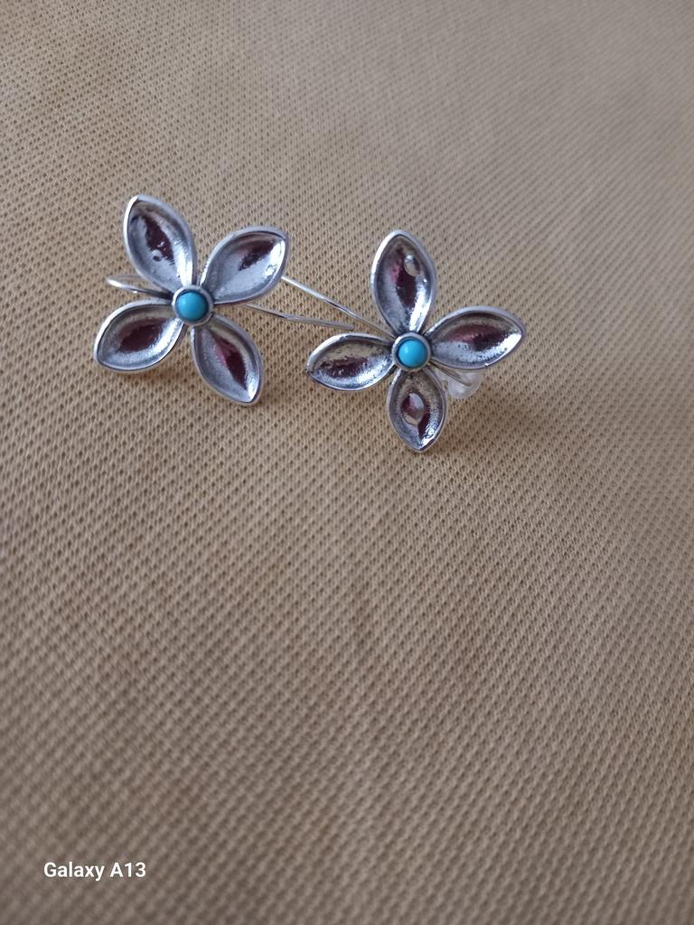 Bohemian Silver Color Metal Hand Carving Flower Earrings for Women Vintage Round Inlaid Blue Stone Hook Dangle Earrings Jewelry