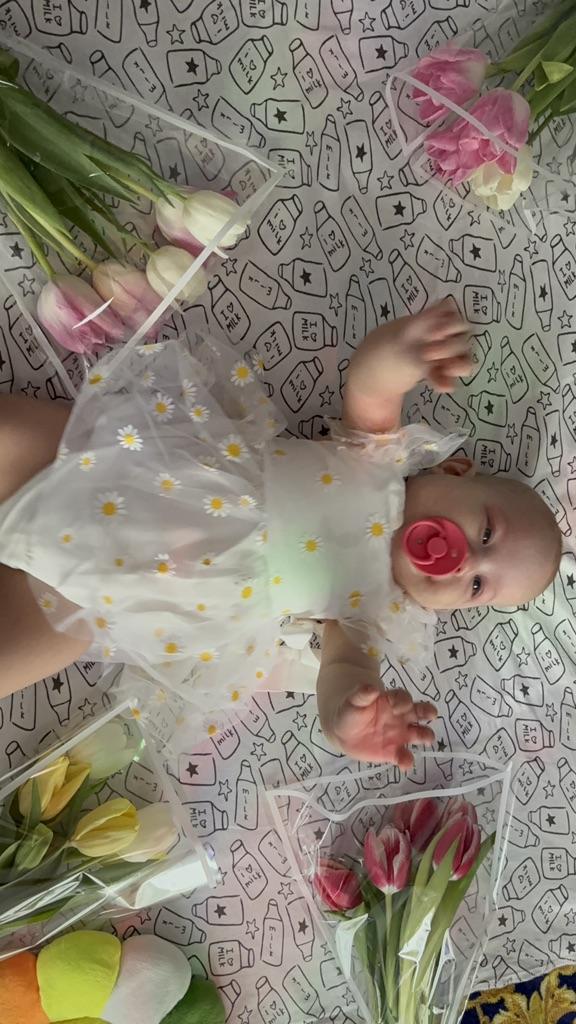 Baby Girl 2Pcs Summer Outfits, Ruffle Sleeve Daisy Print Romper Mesh Dress with Headband Set