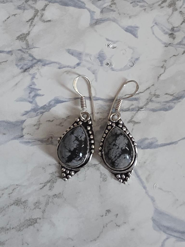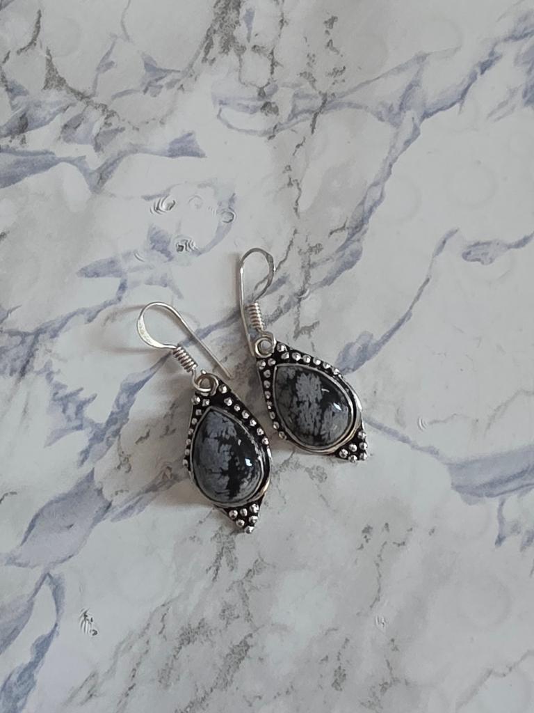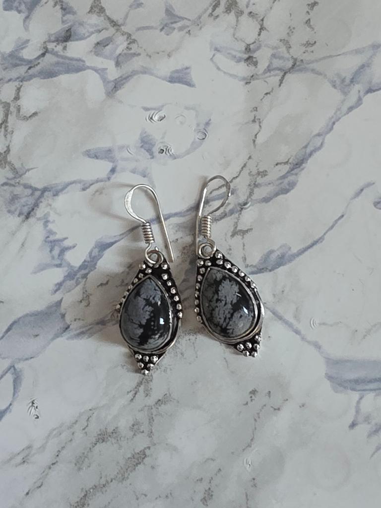 Snowflake Obsidian, Gemstone Handmade Solid 925 Sterling Silver Jewelry Earring