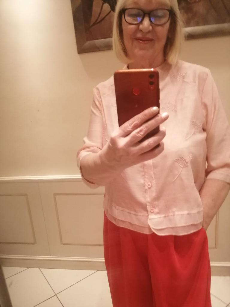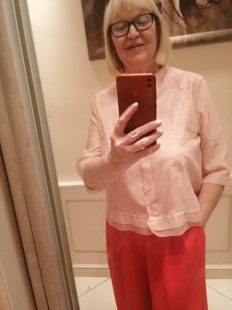 The blouse is the right size, but very short in length. It doesn't cover the tummy. The quality of tailoring is good.