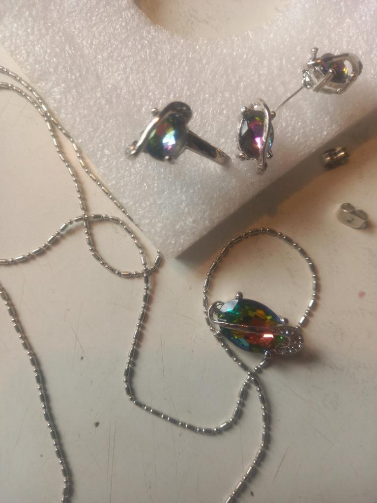 Fashion Women Rainbow Faux Topaz Pendant Necklace Earrings Ring Jewelry Set