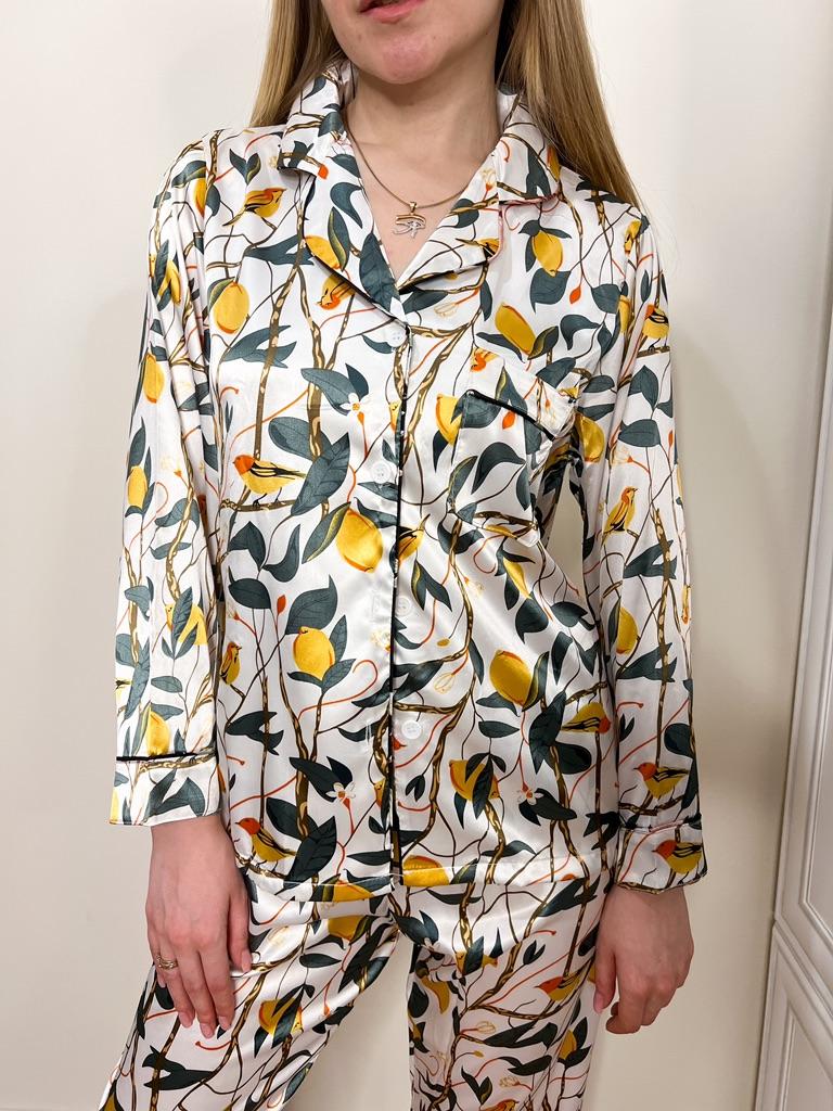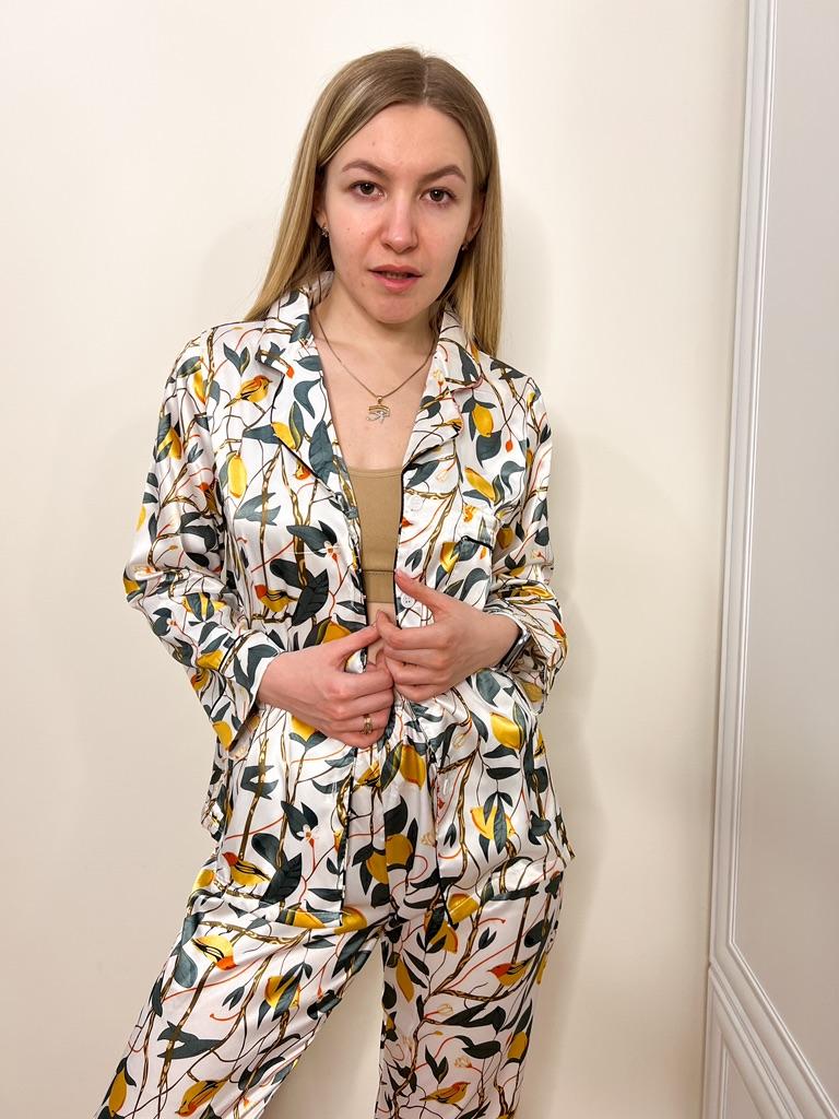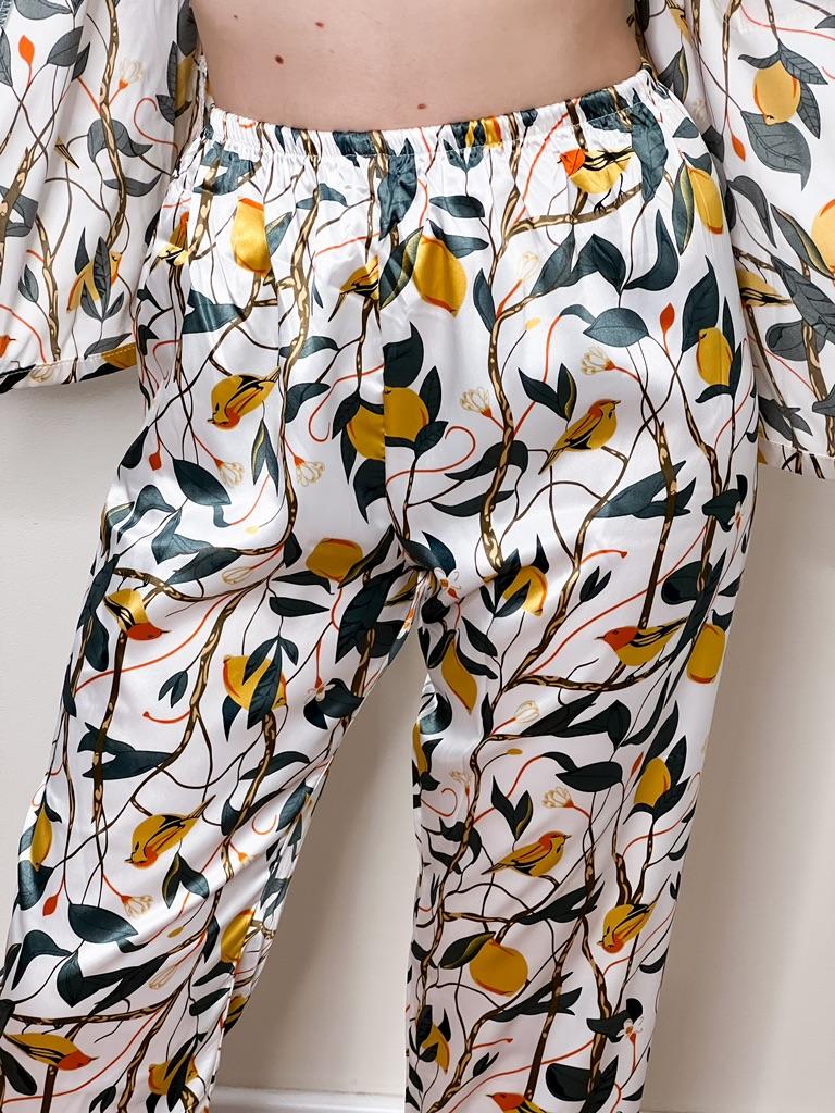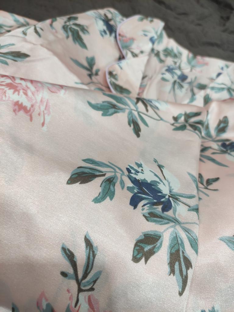 Print Flowers Pajamas Set Women Korean Home Wear Long Sleeved Set Satin Long Pant Casual Chic Sleepwear Trend