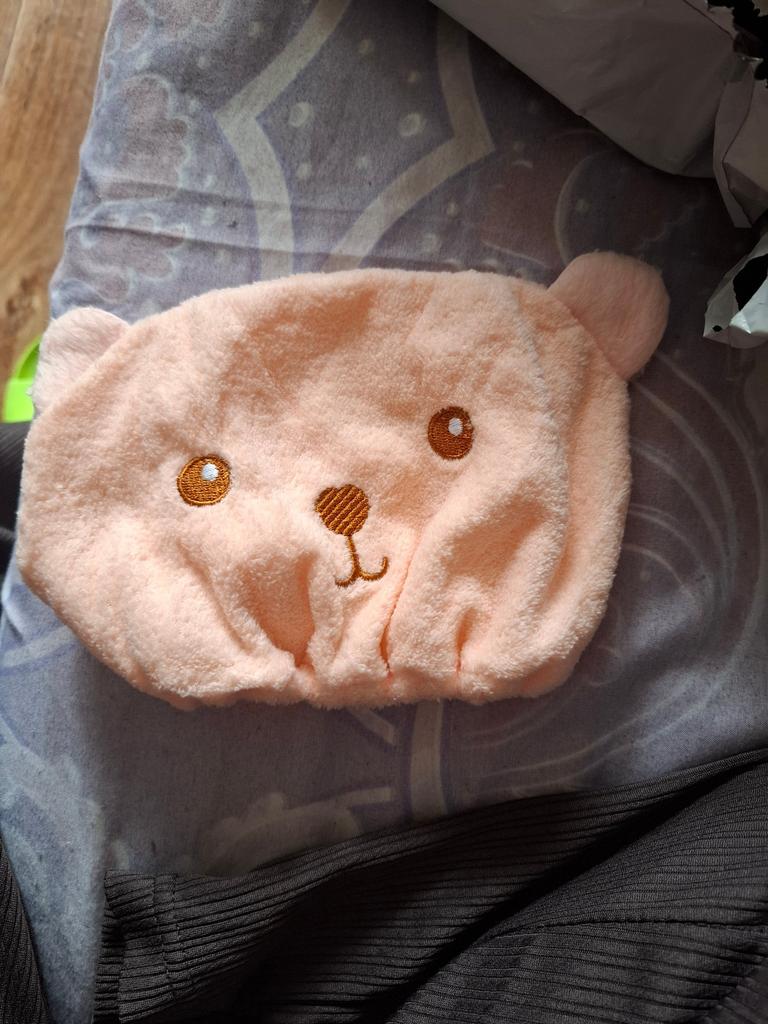 Children's hat. More convenient than a towel. If it had an elastic band, it would be great. Falls off without an elastic band.