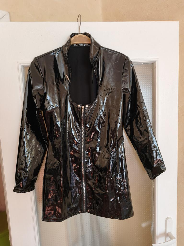 Women Wet-look PVC Leather High Collar Long Sleeves Teddy Bodysuit Catsuit Nightwear Clubwear