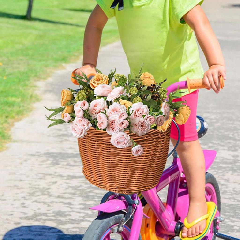 - 【Premium and Reliable】: The bicycle basket is made of high quality PE and PU material, imitation rattan design, sturdy construction that will no out of shape, and is durable, waterproof, and simple yet exquisite.