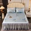 3Pcs/Lot Double Bed Sheet Set Classic Lace Royal Blue Bed Sheet Bed Skirt, Machine Washable Wedding Bedspread Mattress Cover