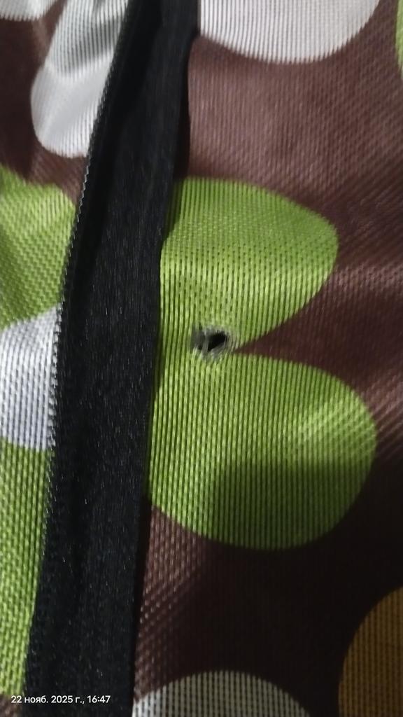 The bag arrived damaged. Burned through (in several places). The packaging is not damaged. They put in a damaged item with a terrible smell. I request a full refund for the item and for it to be picked up.