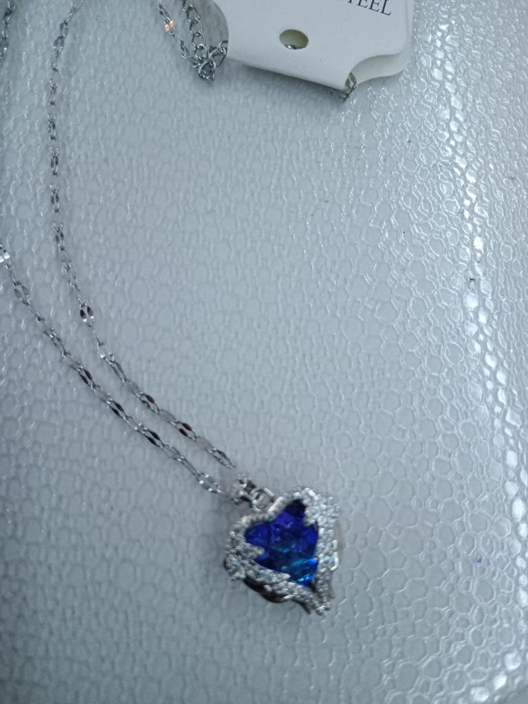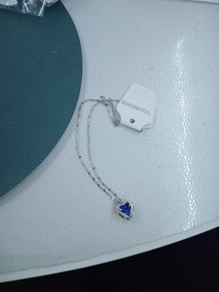 Ocean Heart Necklace Women's Light Luxury Blue Crystal Necklace Heart Clavicle Necklace