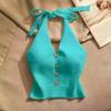 Summer Chic Hang Neck Sexy Knitted Suspender Girl Sweet Style Lace Up Backless Tops New Design Casual Fashion Camis Chic Clothing