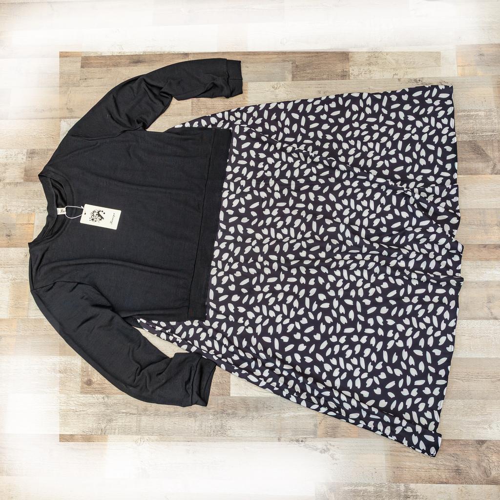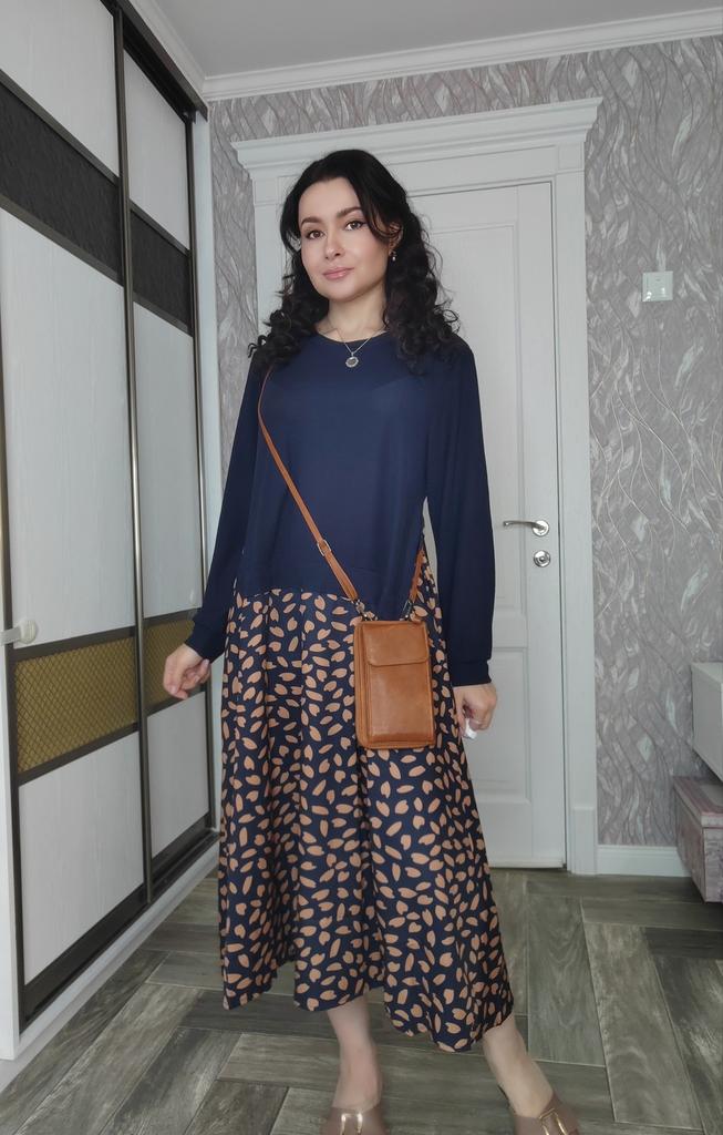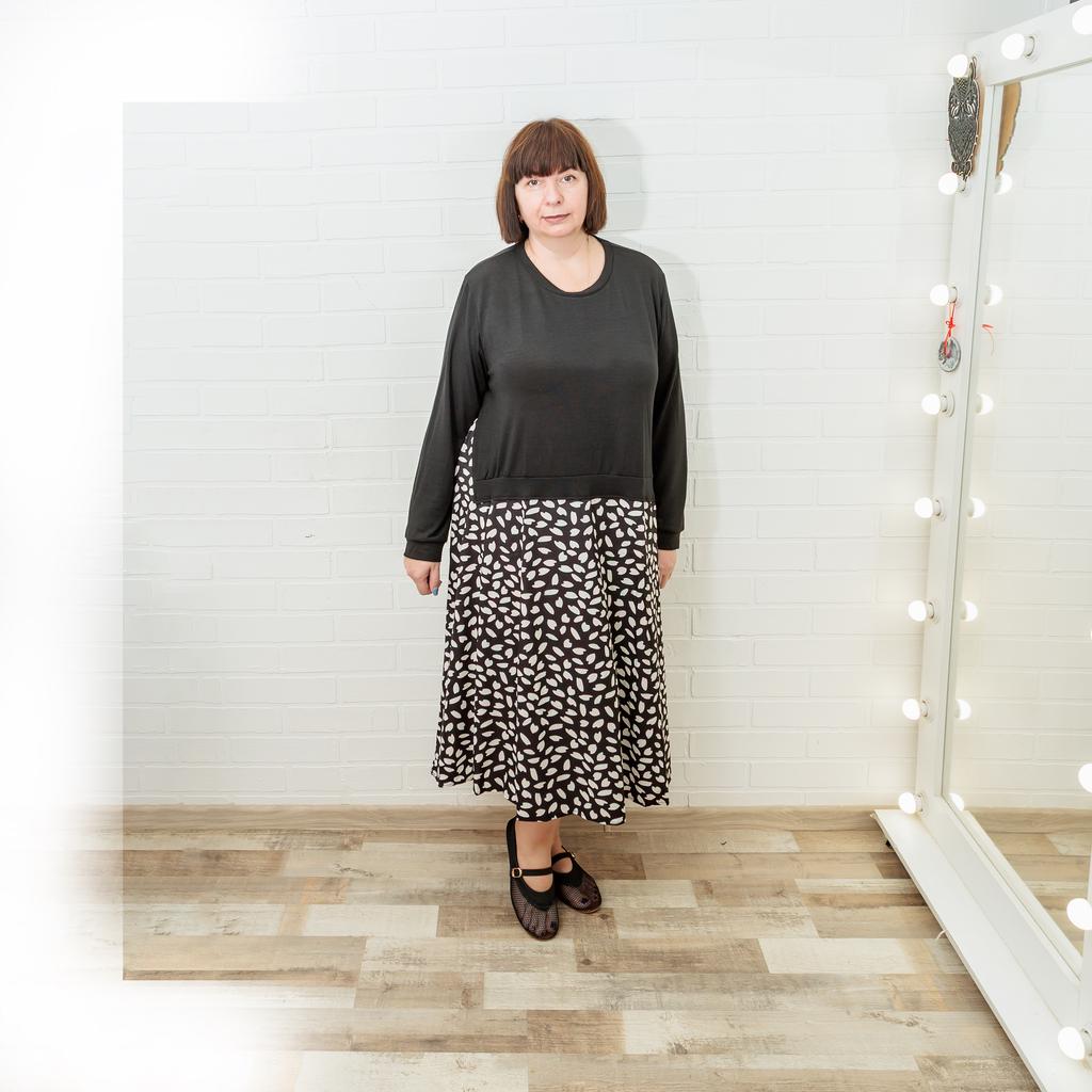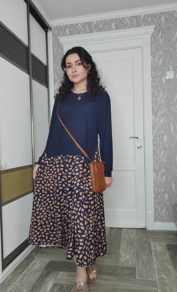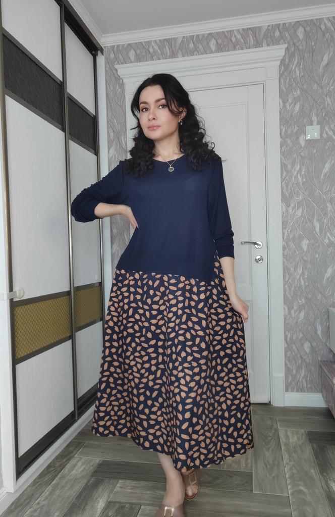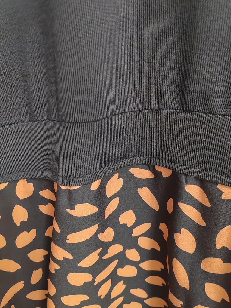 Spring and Autumn Plus Size Long Sleeve T-Shirt Splicing Printed Big Swing Dress Round Neck Long Dress