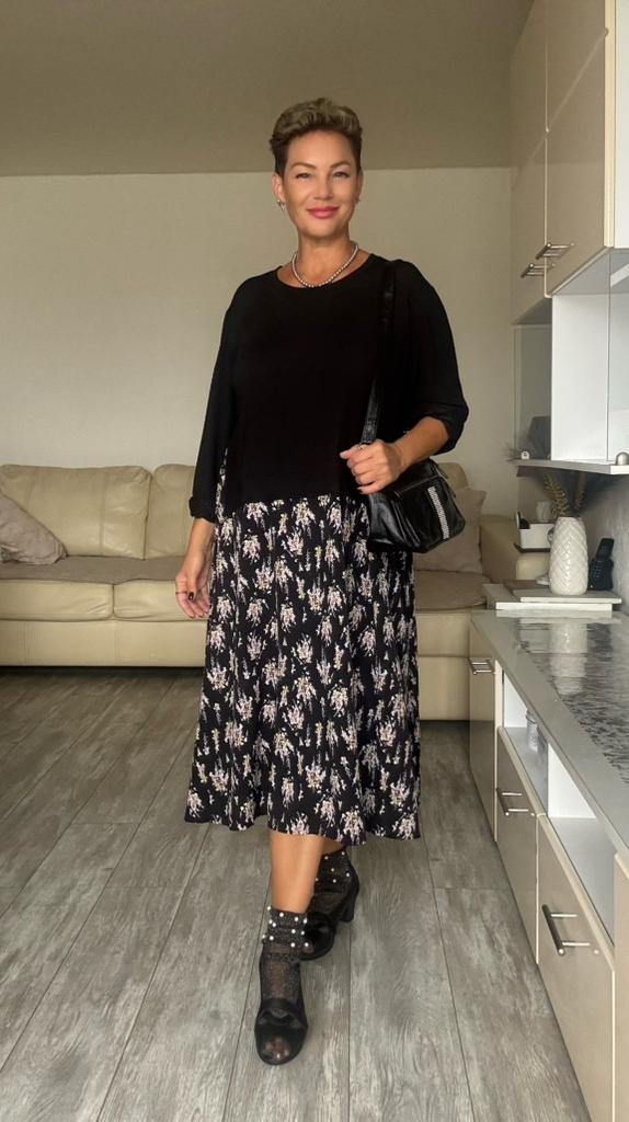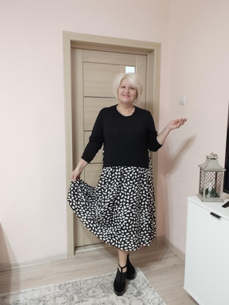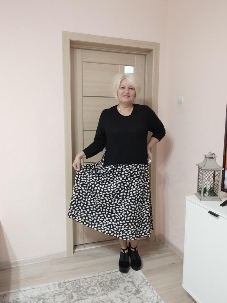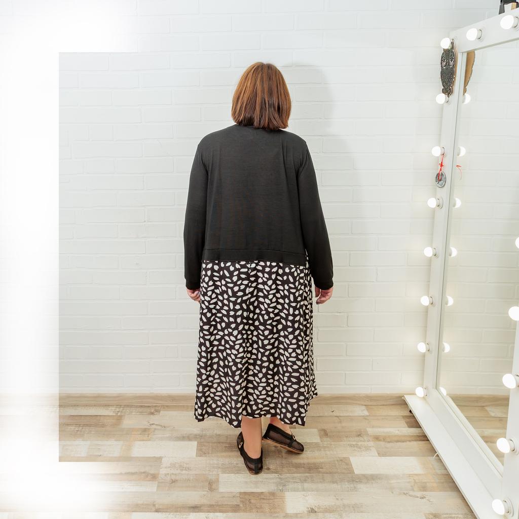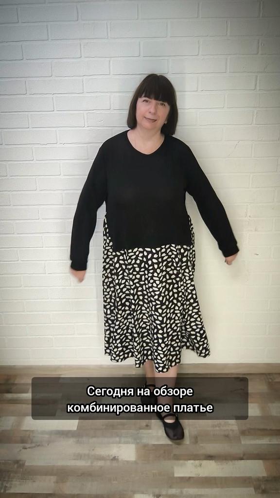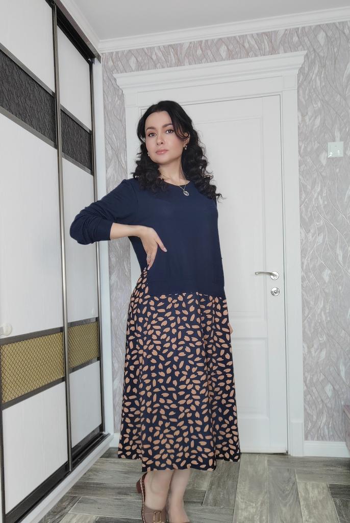 Spring and Autumn Plus Size Long Sleeve T-Shirt Splicing Printed Big Swing Dress Round Neck Long Dress
