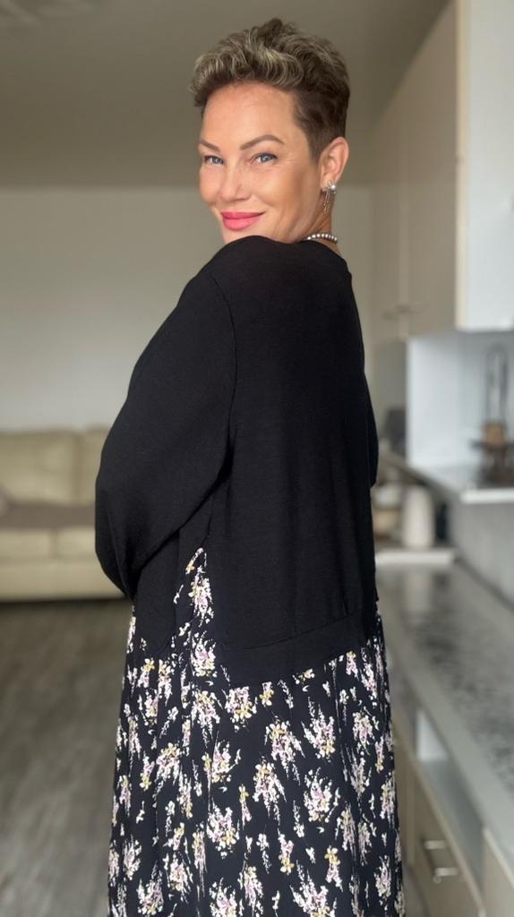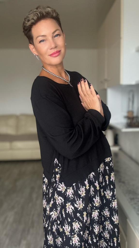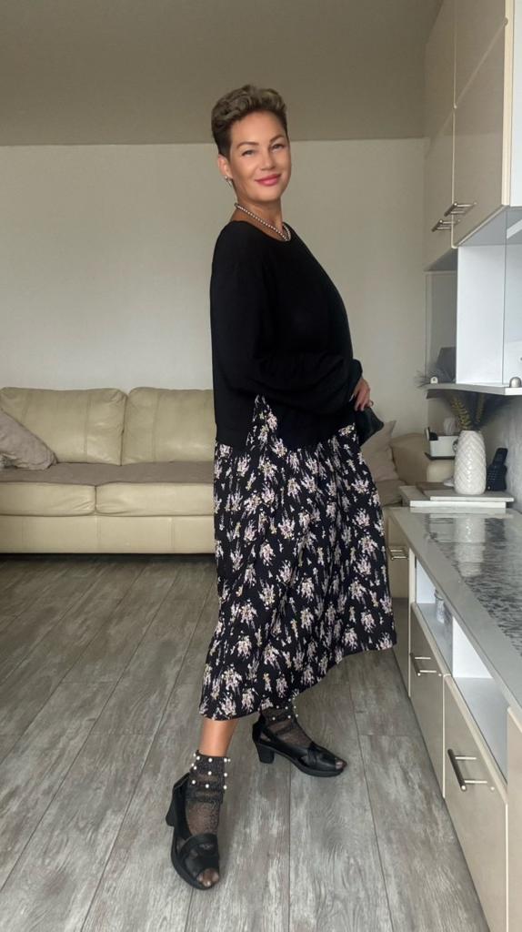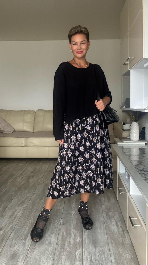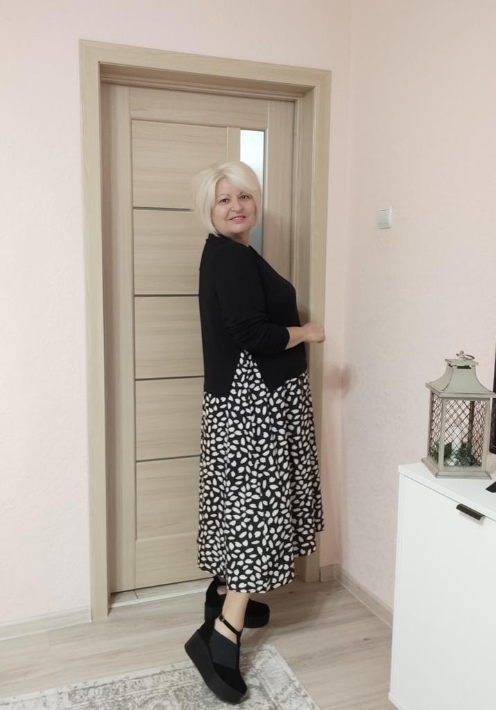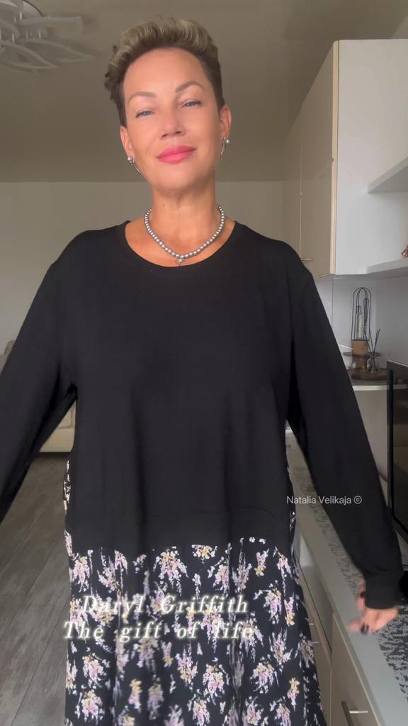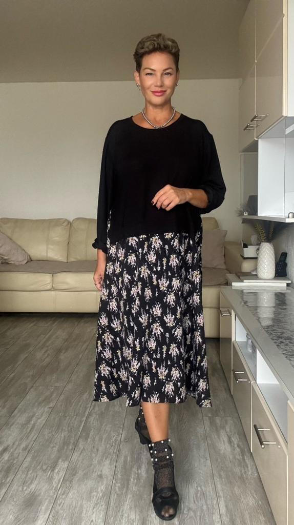 Spring and Autumn Plus Size Long Sleeve T-Shirt Splicing Printed Big Swing Dress Round Neck Long Dress