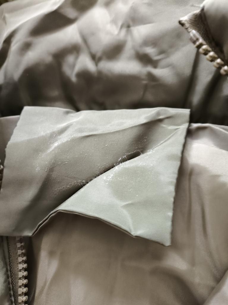 The size is not indicated at all, the label is simply torn off. Zipper hood other And also the interior trim is kind of sticky, I guess something was glued on