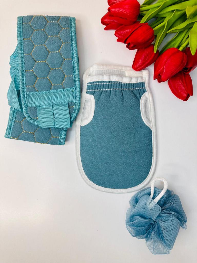 Ladies' 3-Piece Bath Towel Set for Strong Mud and Dust Scrubbing, Long Back Scrubber
