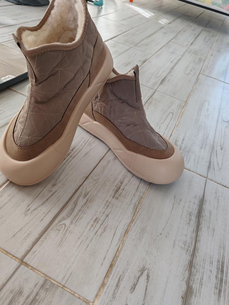 Lightweight, soft, warm, fashionable, bought for size 38. Put the foot in preferably with a shoehorn. There is no extraneous odor. Thank you all!