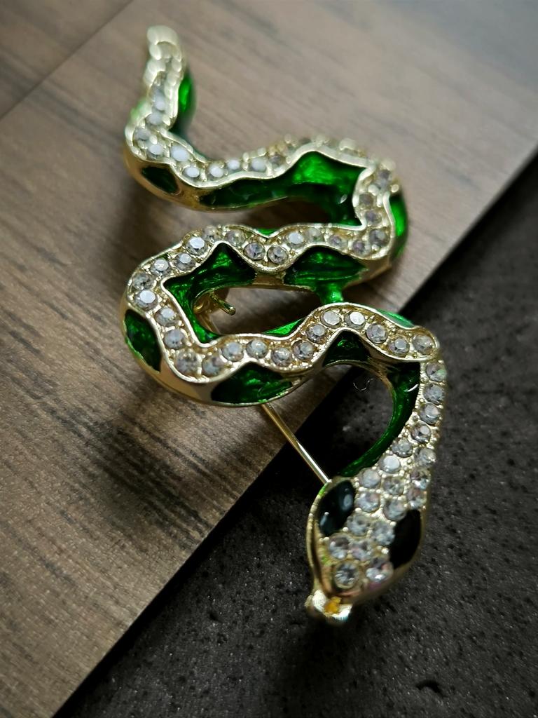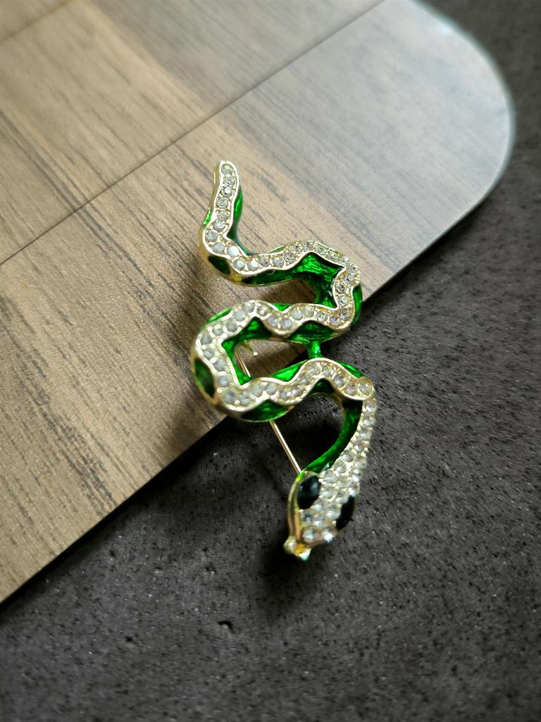 Animal Green Snake Brooch Pin Colored Vintage Imitation Crystal Rhinestone Lapel Pin For Men Women Gift Jewelry Accessories