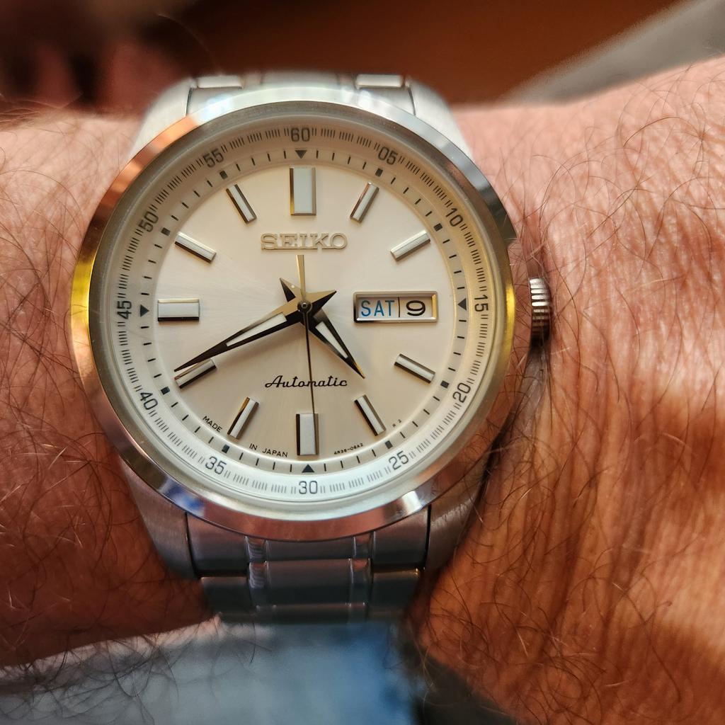 The metal dial and thick hands create a luxurious feel that can only be achieved with a mechanical watch.