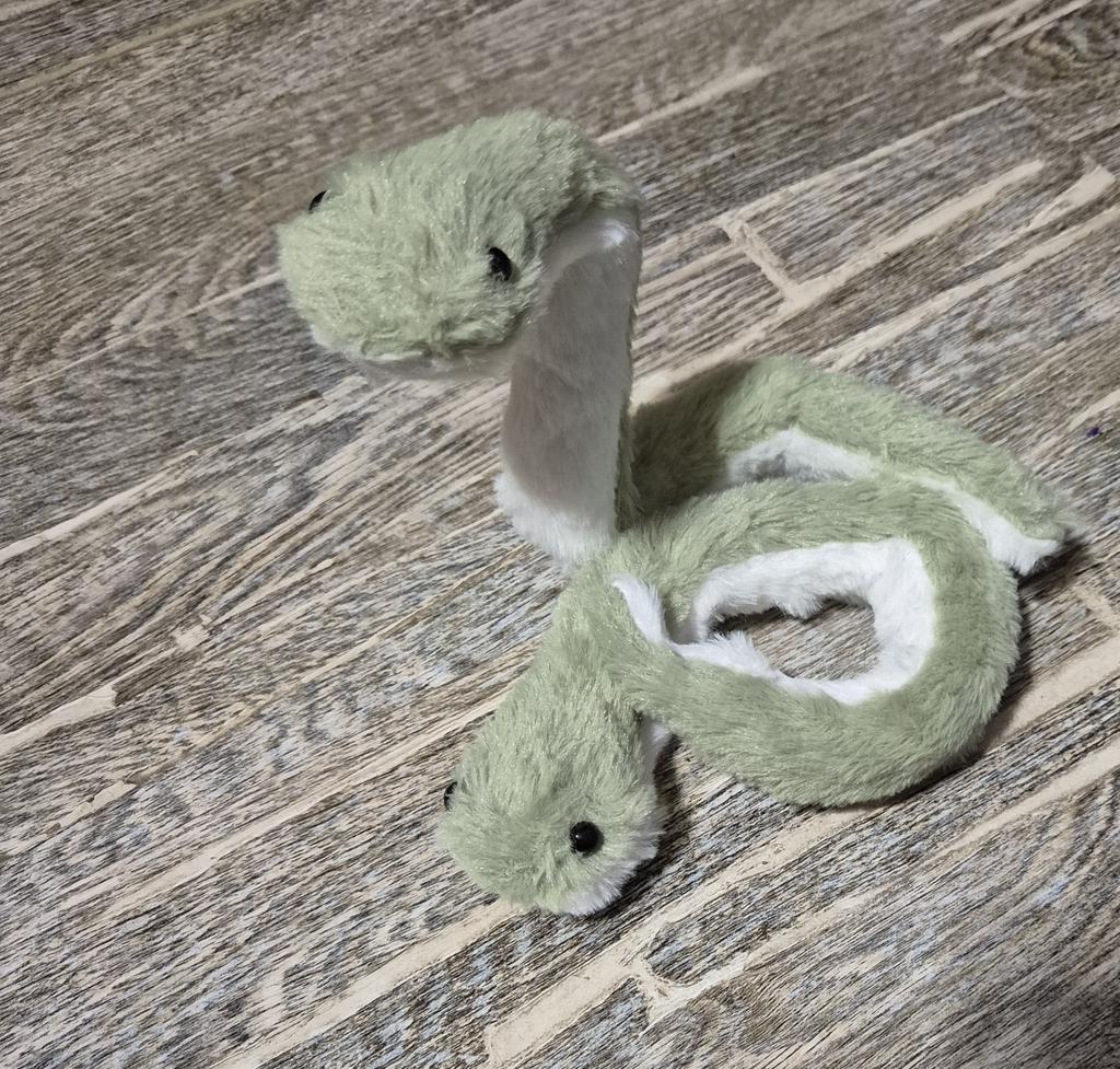 The fur is very soft and pleasant to the touch. Of the minuses, I will point out that the glue sticks out a lot from the eyes, as well as on the body of the snake itself. There is a hole near the tail, which they tried to glue.. For its price it's ok