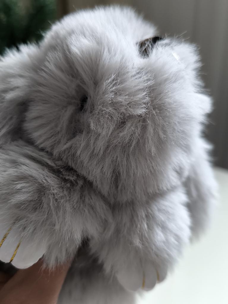 * ๐ฐ Rabbits - Stuffed Animal * ๐ฅ๐๐ถ๐ฒ๐ณ๐ฒ๐ฟ๐๐ฒ๐ถ๐ 16 days to Germany ๐ฅ๐๐ถ๐ฒ๐ณ๐ฒ๐ฟ๐๐บ๐ณ๐ฎ๐ป๐ด Included in the delivery is 1 plush toy in the corresponding color. It is available in two different colors in one size.. I ordered the flauschihasen6 in light grey instead of the other option (dark grey). The hare was only sealed in a foil. ๐ฅ๐ค๐๐ฎ๐น๐ถ๐รค๐ The plush toy is very fluffy and soft and doesn't smell of unpleasant chemicals. However, there is so much fluffy fur that you can hardly see the eyes, let alone the nose, which I really had to search for, otherwise it has white paws made of a kind of faux leather with gold-colored yarn.. I especially like that the rabbit is so beautifully fluffy and soft. It is also practical that there is a ribbon with a pendant on the head of the rabbit, which allows you to attach it to a trouser loop, a belt, a bag or a key ring. โWhat I like less is that you can hardly see the eyes, let alone the nose, due to the amount of fur. I also don't think it's so good that the ears are located on the sides of the head and not in the correct position (above on the head). This makes the plush toy look somewhat strange in its fit.. For material composition : Unknown ๐ฅ๐๐ฎ๐๐ถ๐ Cute cuddly bunny with a charm for the handbag or backpack. He is about 20 cm tall. ....but the disadvantage is that one can hardly see the eyes or nose due to the amount of fur (see photos and video). Besides, the ears are set too far to the sides of the head, which makes the rabbit look strange.