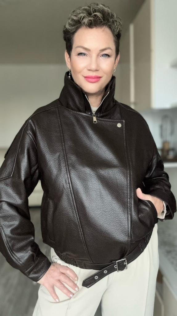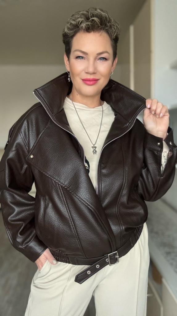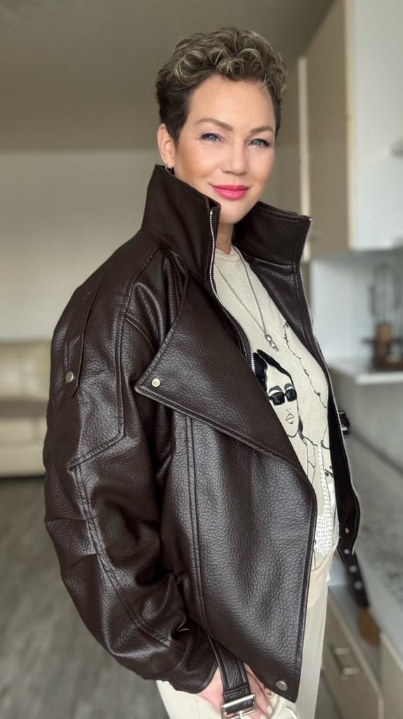 Stylish Women's Motorcycle Jacket with Thickened Lamb Simulated Leather