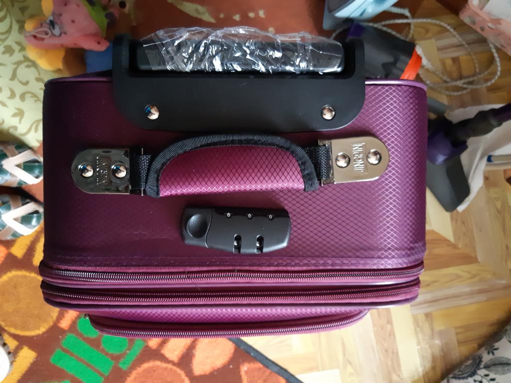 I was afraid the size would be like S (I saw such sizes in our stores, considering them a bit small), but this size fits me. They included a spare wheel. There are two complaints: the wheels are without rims (this problem needs to be solved) and the handle and lock are installed crookedly.