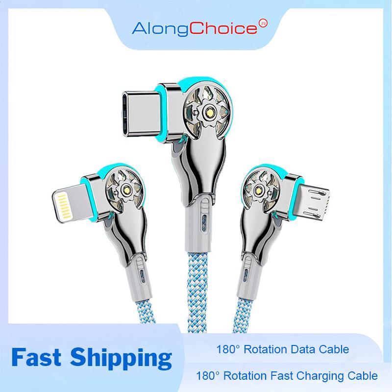 65W Charging Cable For Type-C Micro Lightning Super Charge Data Cable 180° Rotation Nylon Cable USB Cable Fast Charge