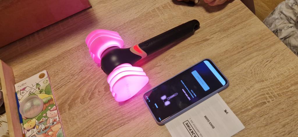 Protected and kept in excellent condition, but you could have also added a photocard like all sellers do, the silicone of the hearts has come off a bit but nothing to worry about. Edit: The lightstick starts to light up slightly orange. I try moving the same batteries to a different place, and then it doesn't turn on anymore.