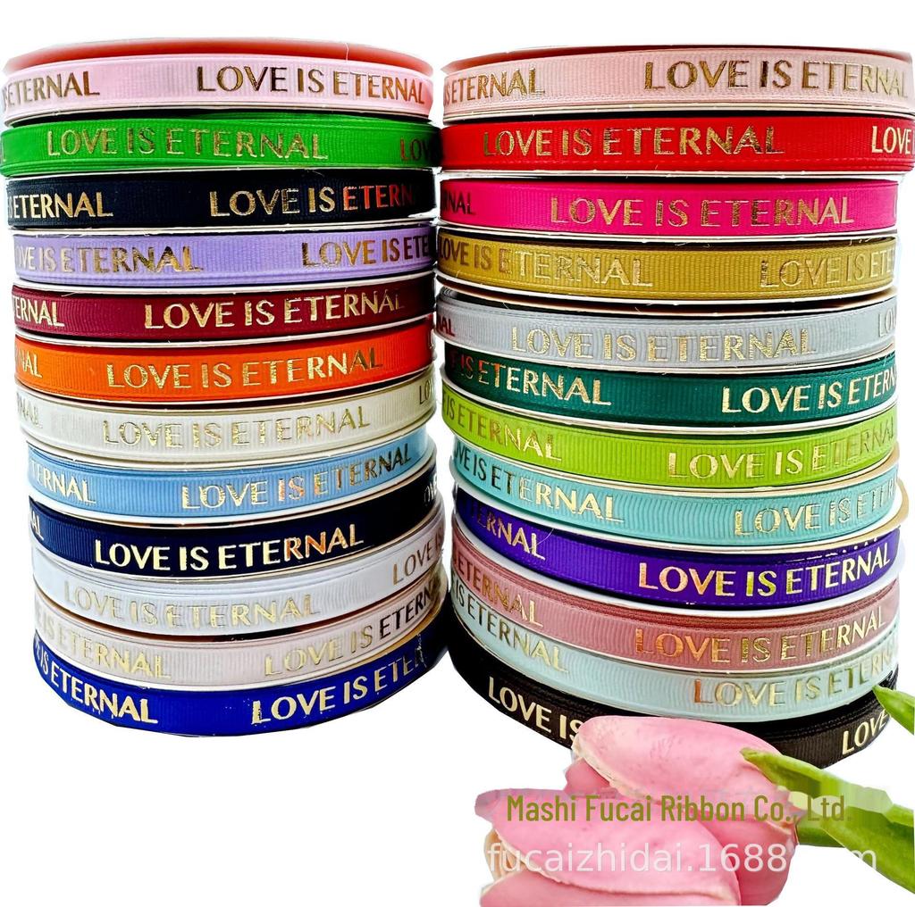 1cm Quality Heat-Set Hot Stamping Threaded Flower Packaging Ribbon with Lettering