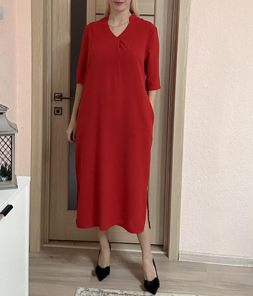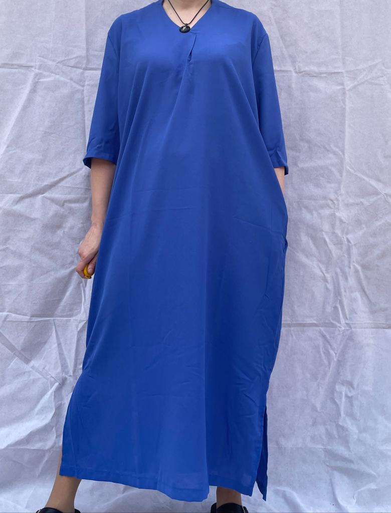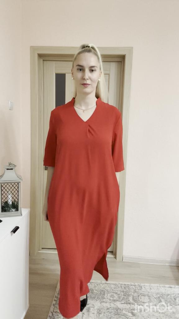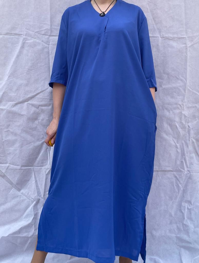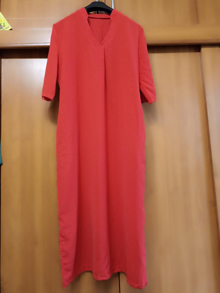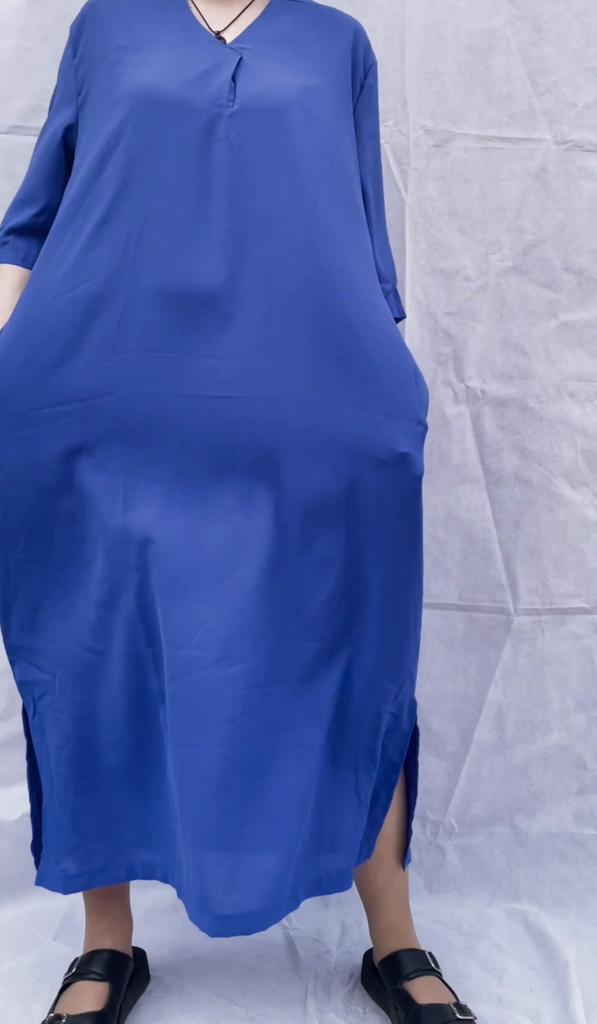 This high-quality polyester dress features a casual loose cut, ensuring comfort with its soft and lightweight fabric. The V-neck long dress design includes loose tailoring and wrinkle details for a simple yet stylish look.