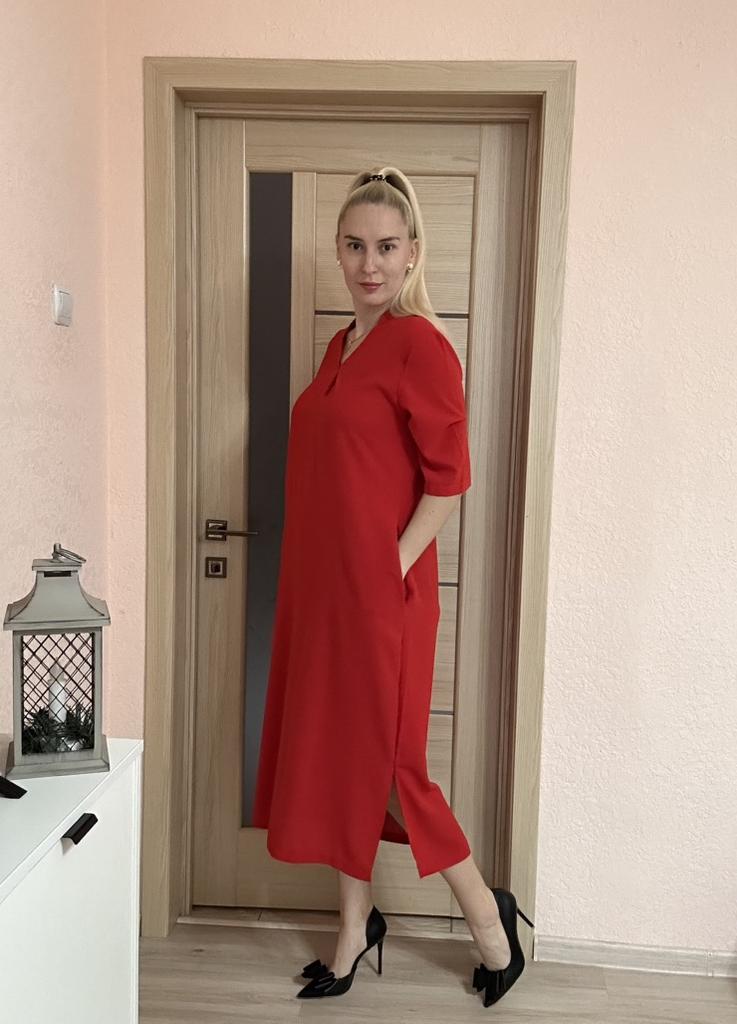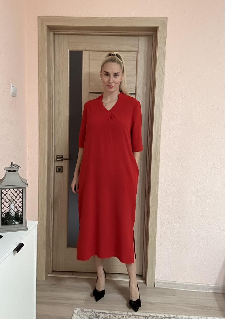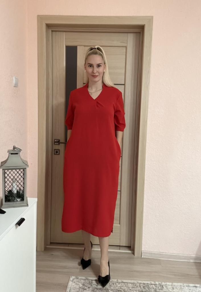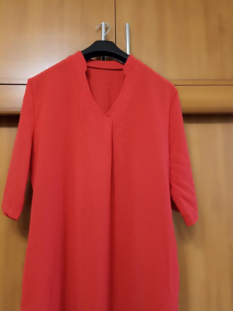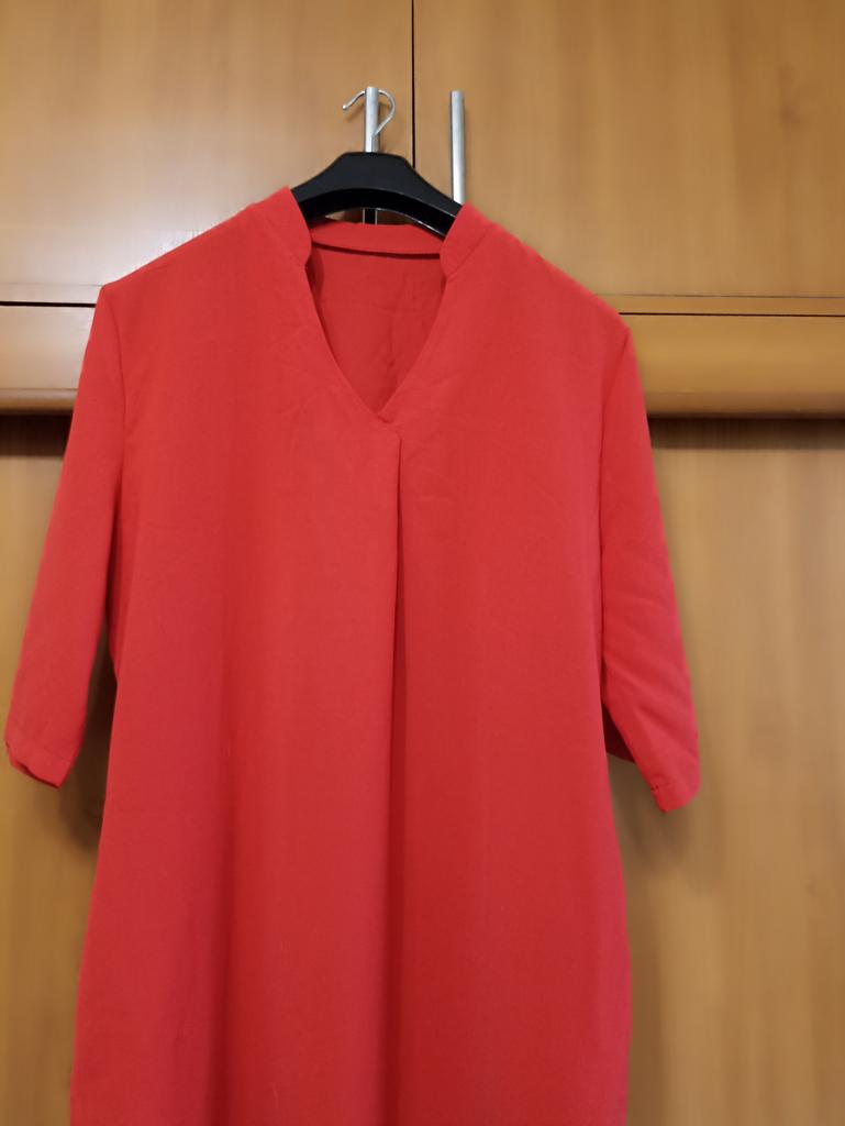 This high-quality polyester dress features a casual loose cut, ensuring comfort with its soft and lightweight fabric. The V-neck long dress design includes loose tailoring and wrinkle details for a simple yet stylish look.