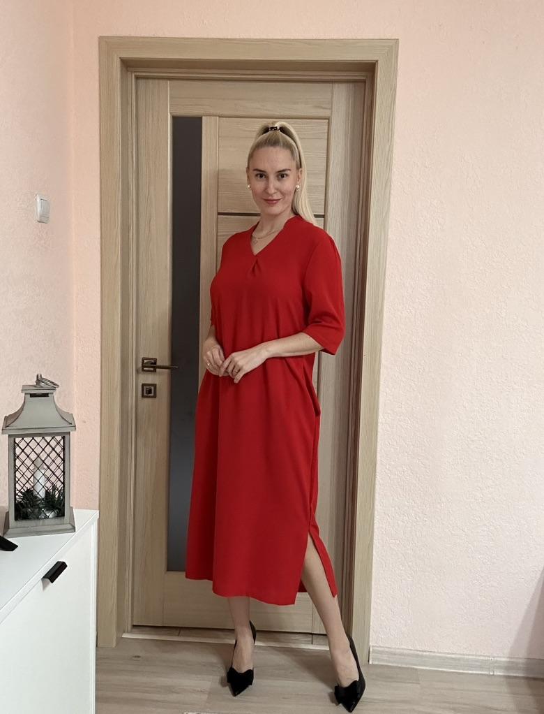 Elegant V-Neck Design: Embrace simplicity and style with the V-neck long dress featuring loose tailoring and wrinkle details, exuding a chic and sophisticated look effortlessly.