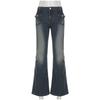 Vintage Y2k Flared Jeans Retro Button-up Middle Waist Casual Denim Pants Harajuku 2000s Basic Aesthetic Cotton Trousers 2025 Spring Autumn