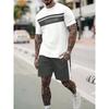 European-american Style Manfinity Homme Men's Full Print Casual Short Sleeve T-shirt + Shorts Set Anti-wrinkle Heat Insulation
